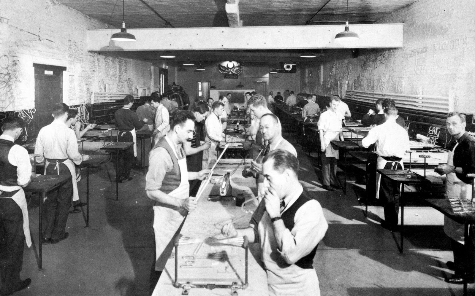 La formation est limitée à l’apprentissage du soufflage de verre et aux connaissances sur le fonctionnement du tube néon et la haute tension.